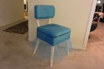 - Small repairs: I have re-painted tables, desks and bed frames. I’ve re-upholstered furniture. Above I upholstered a small chair for my bedroom closet. I love this little chair, there is a storage space in the seat and a little tutu around the bottom.